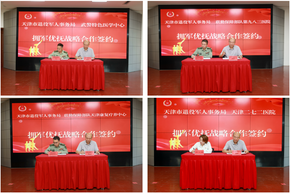 天津市退役军人事务局、武警特色医学中心、九八三医院、天津康复疗养中心、二七二医院的相关业务部门负责同志,和平区、河北区、河东区、南开区、东丽区退役军人事务局负责同志参加签约仪式。