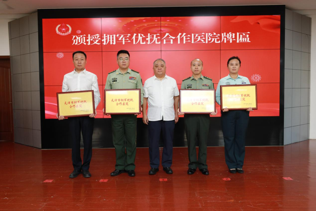活动中,天津市退役军人事务局分别与四家军地医院签署了拥军优抚战略合作协议,并颁授“天津市拥军优抚合作医院”牌匾。杨震主任、占荣华书记代表合作医院作表态发言,表示将用心用情用力把“为军主责”落实到每一个诊疗环节,在挂号、检查、住院等方面给予优先、优惠、优质的服务,让尊崇与关爱看得见、摸得着、感受得到,进一步提升优抚对象的获得感、幸福感、荣誉感。
