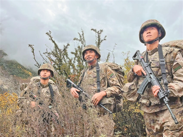 初冬的西南边陲,寒风似刀刃。西藏军区某团巡逻分队穿行于悬崖绝壁间,身侧便是深渊,前方探路的一级上士次罗布高声叮嘱身后的战友。
