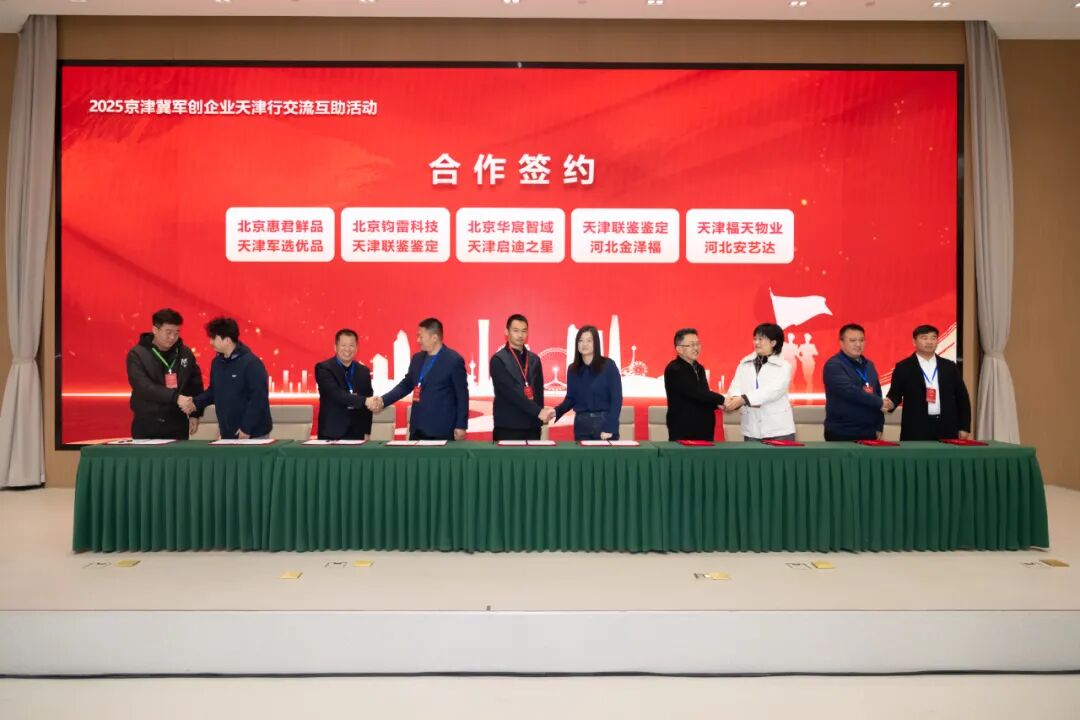 为强化资源对接实效,三地退役军人事务部门前期深入开展合作意向摸排,经多轮沟通与实地走访,促成5组企业达成合作意向,并于活动现场举行集中签约仪式。签约项目涵盖科技孵化、生鲜采购、建筑质量检测、环境治理、物业服务等多个领域,军创项目的合作落地标志着京津冀军创企业协同发展取得阶段性成果。本次交流互助活动是退役军人就业创业工作服务国家战略的具体实践,有效促进了三地军创企业在项目、技术、市场等方面的深度合作,为打造京津冀协同发展新高地注入了军创动能。