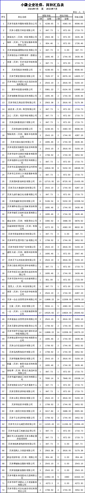 2021年7月小微企业享受社保、岗位补贴公示名单