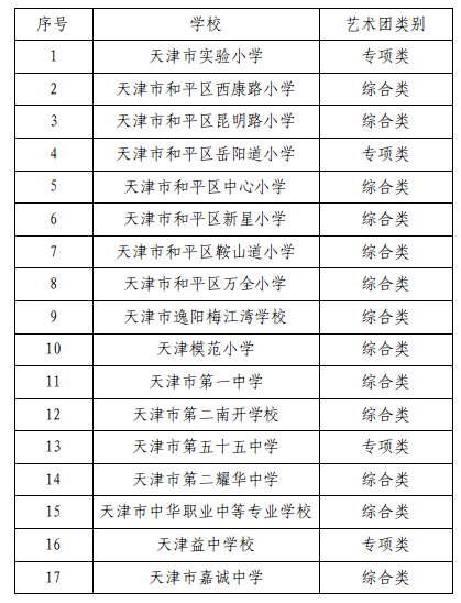 和平区关于申报全国示范性特色学校(美育类学校)名单公示