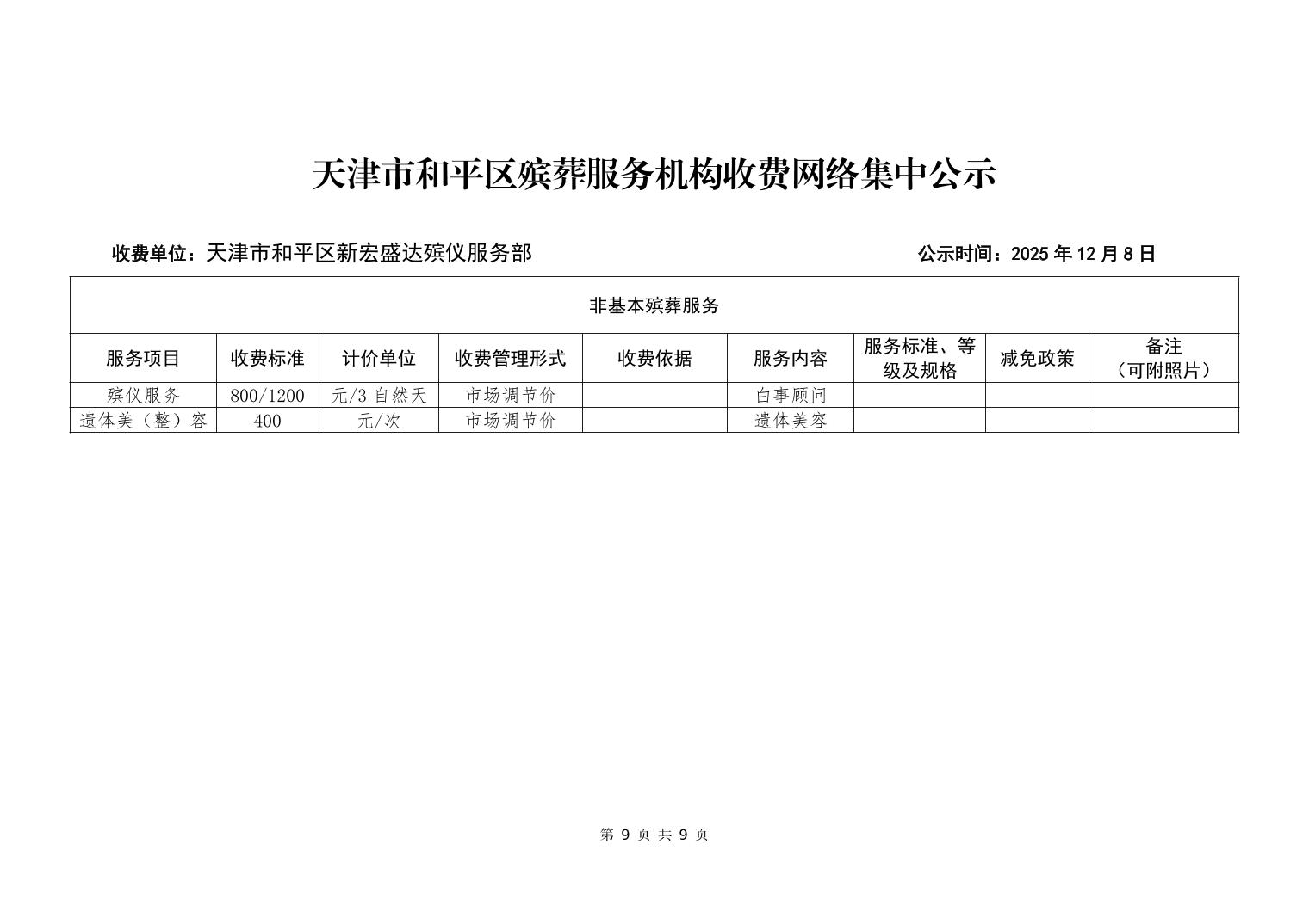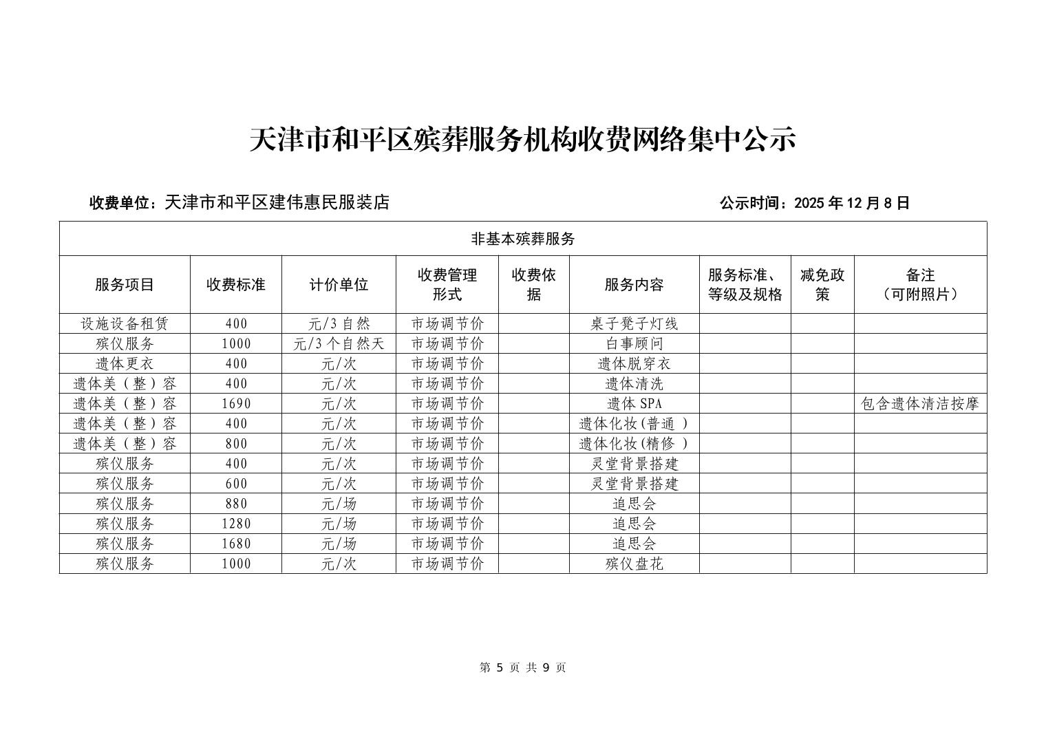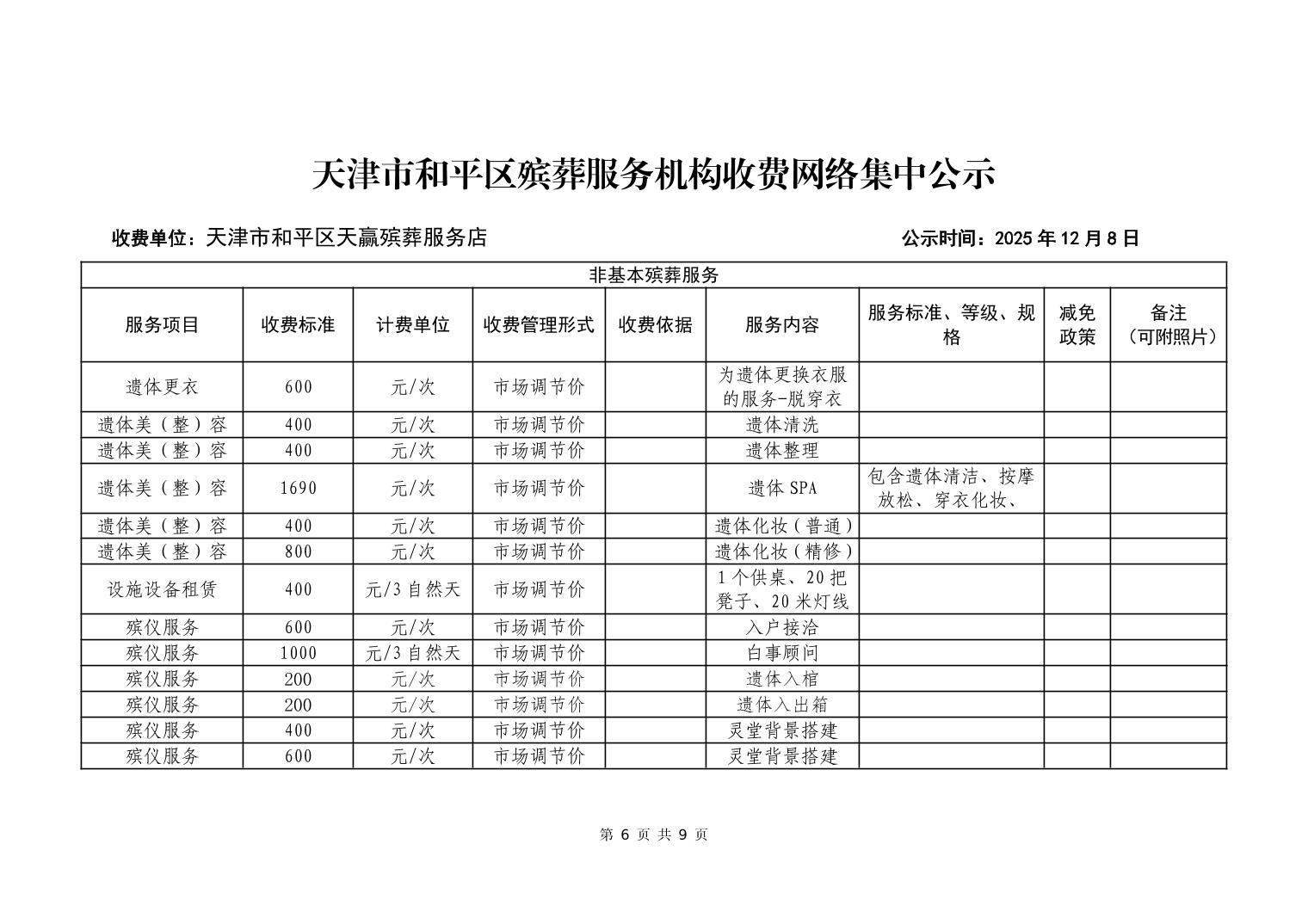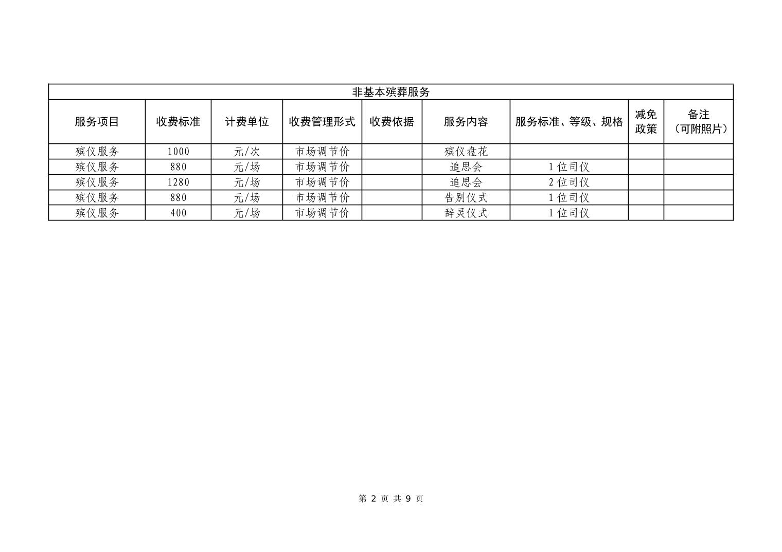 天津市和平区殡葬服务机构收费网络集中公示-非基本殡葬服务价格
