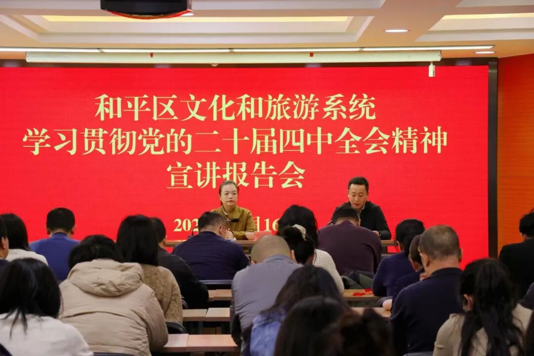 12月16日,和平区文化和旅游局召开学习贯彻党的二十届四中全会精神宣讲报告会。局党委书记、局长彭芃作宣讲报告,区文旅局领导班子成员,区文旅专班、局机关各科室、局属各单位全体干部参加。